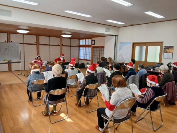 今回は、毎年実施しているクリスマス会に地域の方がお知り合いの「伊藤みどり&西林ひろみ」さんによる「一緒に歌いましょう!」を