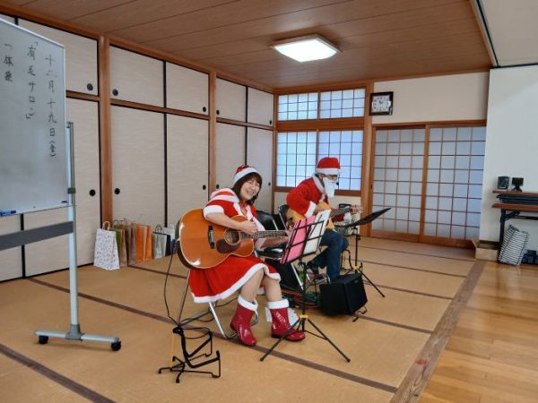 今回は、毎年実施しているクリスマス会に地域の方がお知り合いの「伊藤みどり&西林ひろみ」さんによる「一緒に歌いましょう!」を