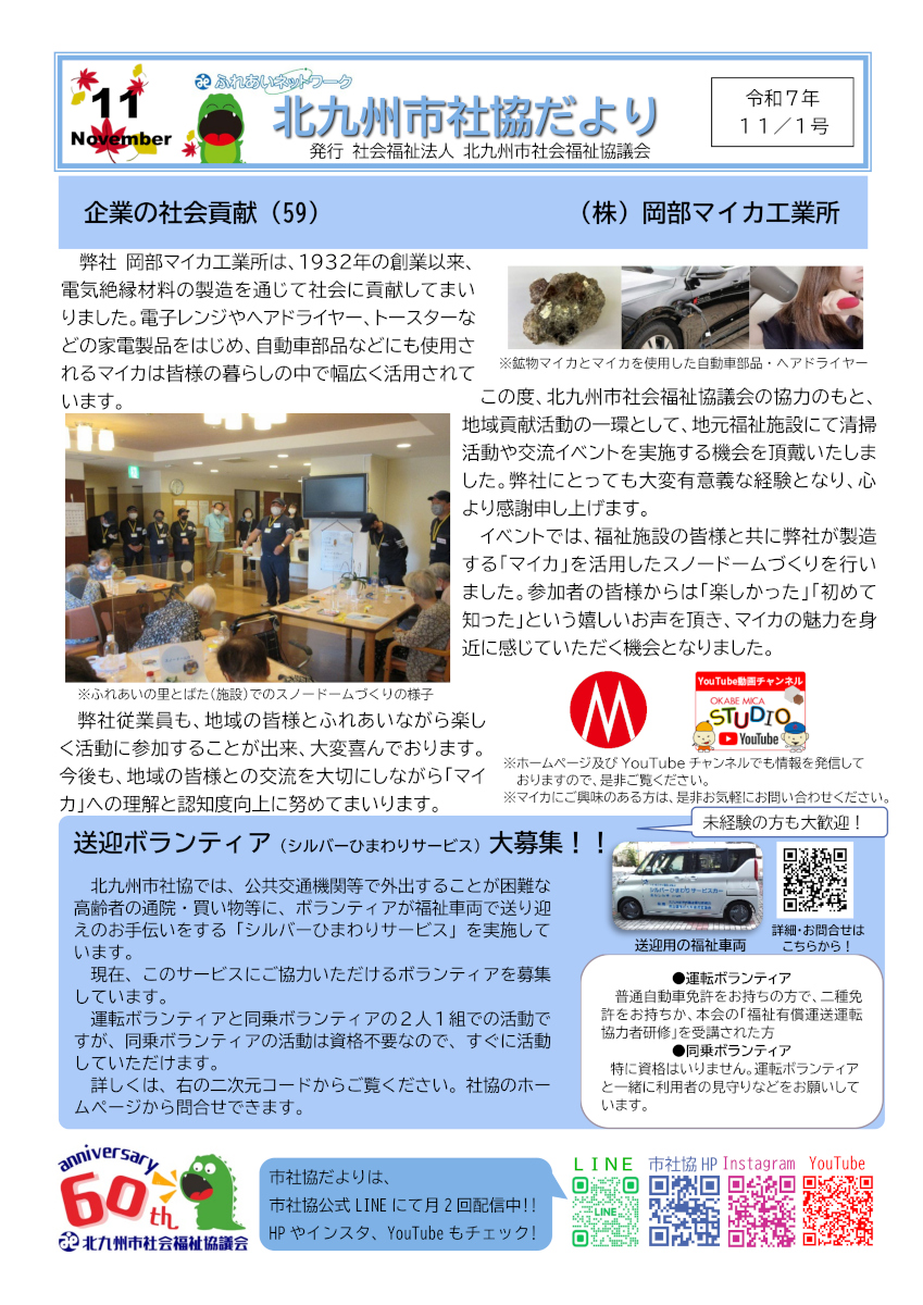 発刊物一覧 市社協だより 令和7年11月1日号 令和7年10月15日号 令和7年10月1日号 令和7年9月15日号 令和7年9月1日号 令和7年8月15日号 過去の市社協だより一覧はこちら 区社協だより もじくしゃきょうだより 第130号(令和7年7月) こくら北しゃきょうだより 第181号(令和7年10月) みなみしゃきょう 第152号(令和7年10月) わかまつ社協だより『しあわせ』 No.143(令和7年10月) 八幡東区社会福祉協議会だより No.85(令和7年4月) やはた西社協だより No.328(令和7年10月) とばた区社協だより 第92号(令和7年9月) 過去の区社協だより一覧はこちら