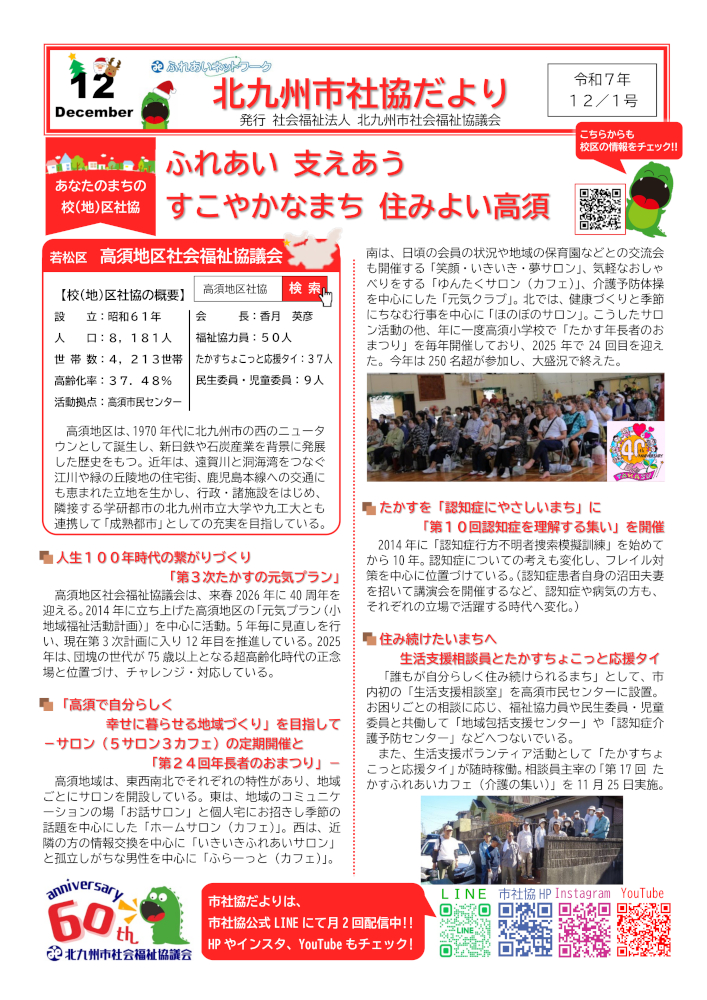 発刊物一覧 市社協だより 令和7年12月15日号 令和7年12月1日号 令和7年11月15日号 令和7年11月1日号 令和7年10月15日号 令和7年10月1日号 過去の市社協だより一覧はこちら 区社協だより もじくしゃきょうだより 第130号(令和7年7月) こくら北しゃきょうだより 第181号(令和7年10月) みなみしゃきょう 第152号(令和7年10月) わかまつ社協だより『しあわせ』 No.143(令和7年10月) 八幡東区社会福祉協議会だより No.85(令和7年4月) やはた西社協だより No.328(令和7年10月) とばた区社協だより 第92号(令和7年9月) 過去の区社協だより一覧はこちら