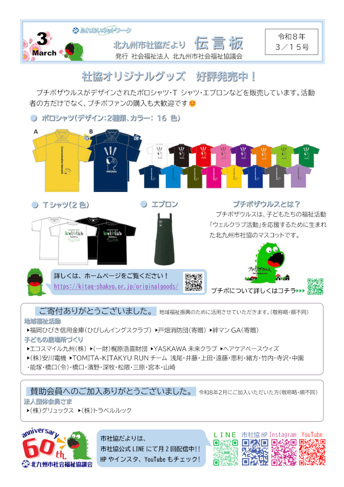 発刊物一覧 市社協だより 令和8年3月15日号 令和8年3月1日号 令和8年2月15日号 令和8年2月1日号 令和8年1月15日号 令和8年1月1日号 過去の市社協だより一覧はこちら 区社協だより もじくしゃきょうだより 第131号(令和8年1月) こくら北しゃきょうだより 第182号(令和8年1月) みなみしゃきょう 第153号(令和8年1月) わかまつ社協だより『しあわせ』 No.144(令和8年2月) 八幡東区社会福祉協議会だより No.88(令和8年1月) やはた西社協だより No.329(令和8年1月) とばた区社協だより 第92号(令和7年9月) 過去の区社協だより一覧はこちら