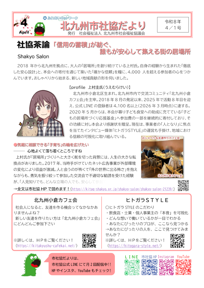 発刊物一覧 市社協だより 令和8年4月1日号 令和8年3月15日号 令和8年3月1日号 令和8年2月15日号 令和8年2月1日号 令和8年1月15日号 令和8年1月1日号 令和7年12月15日号 令和7年12月1日号 令和7年11月15日号 令和7年11月1日号 令和7年10月15日号 令和7年10月1日号 令和7年9月15日号 令和7年9月1日号 令和7年8月15日号 令和7年8月1日号 令和7年7月15日号 令和7年7月1日号 令和7年6月15日号 1 / 4123› »